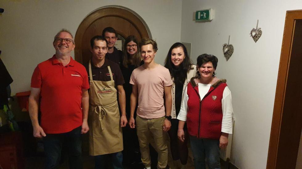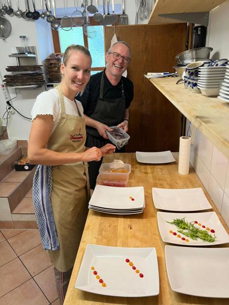 Unser Wirt und Olympiakoch Uli kocht zusammen mit Athleten bzw. Betreuern aus dem Team der Deutschen Nordischen Kombination!